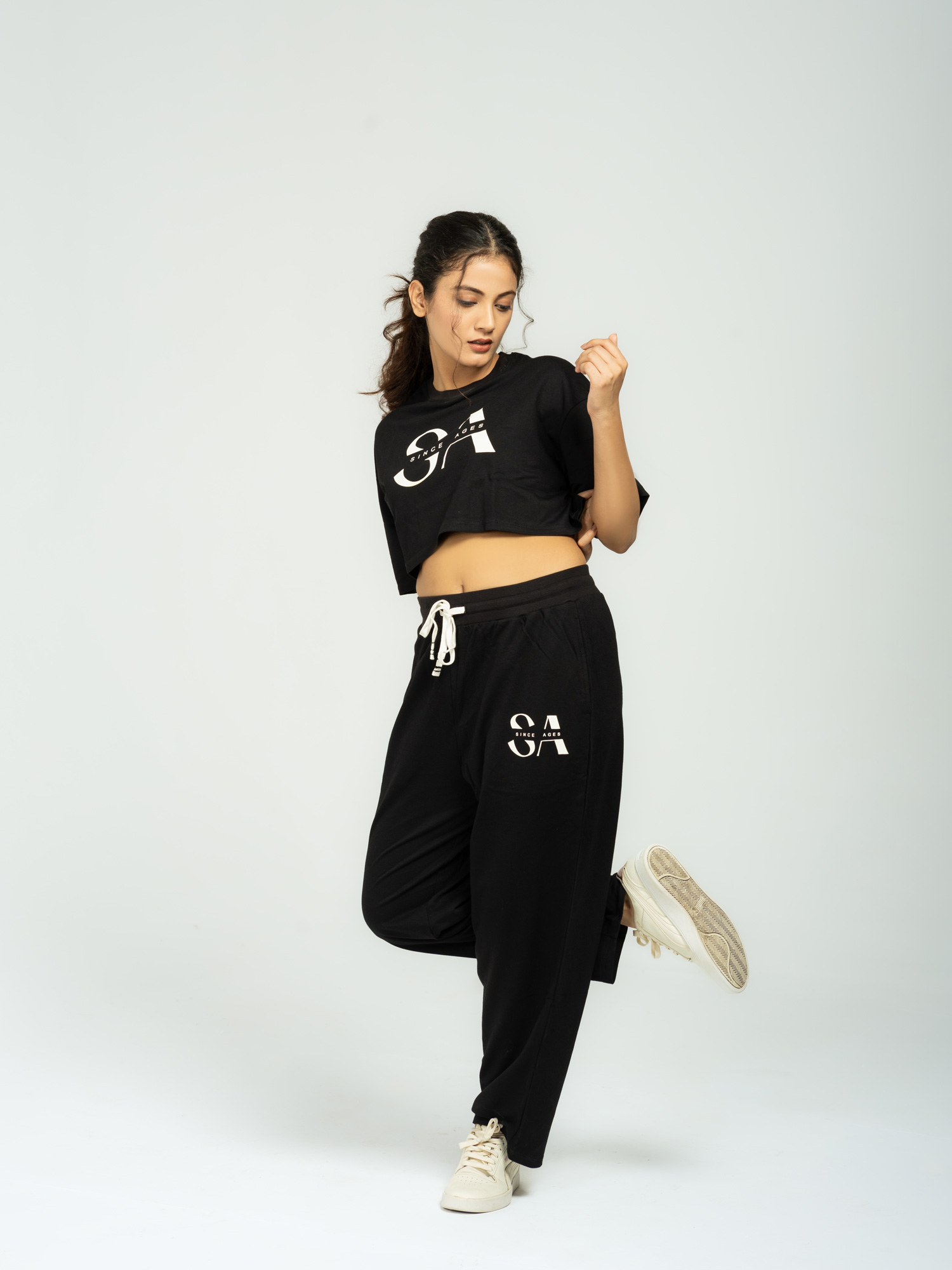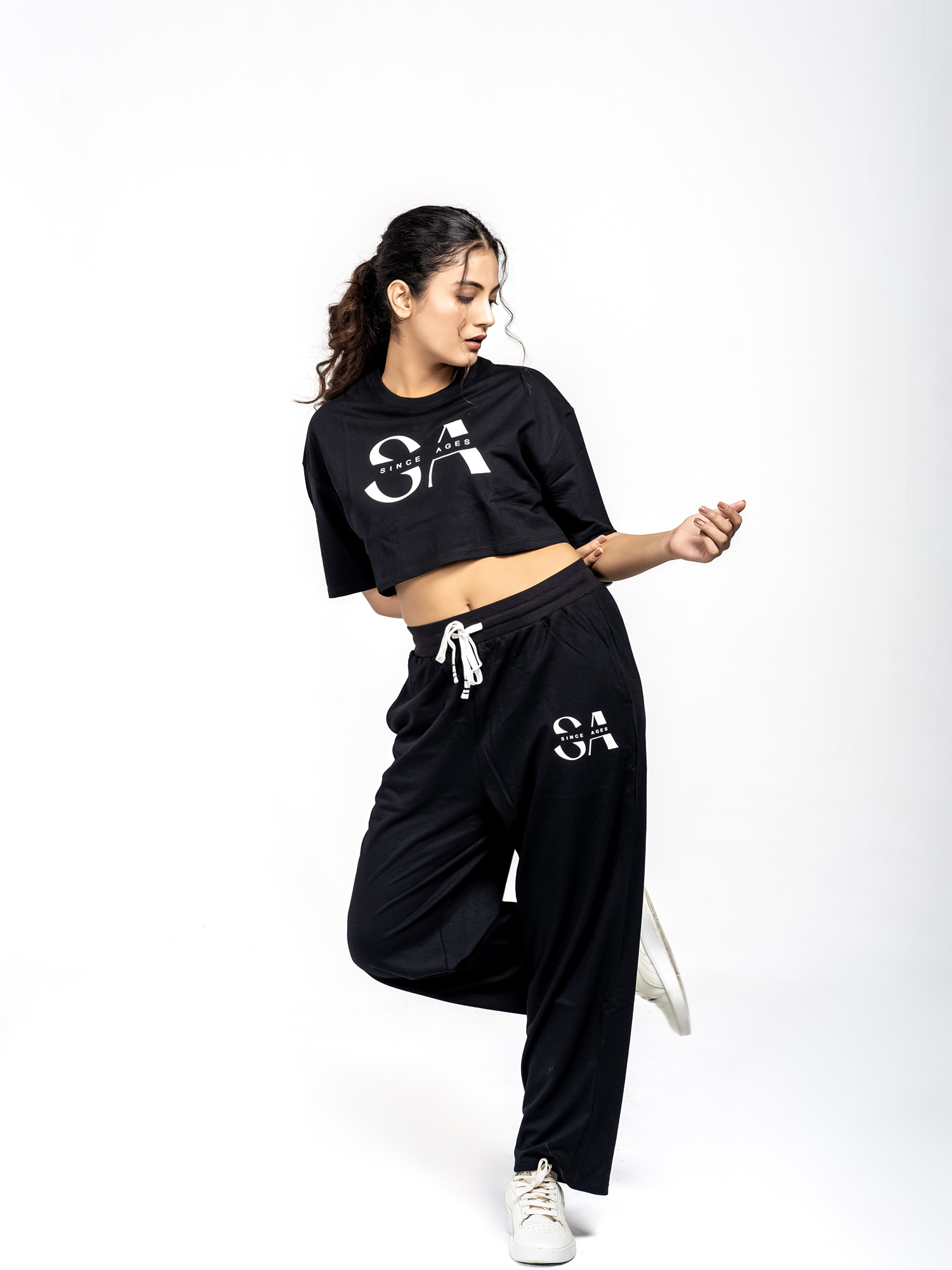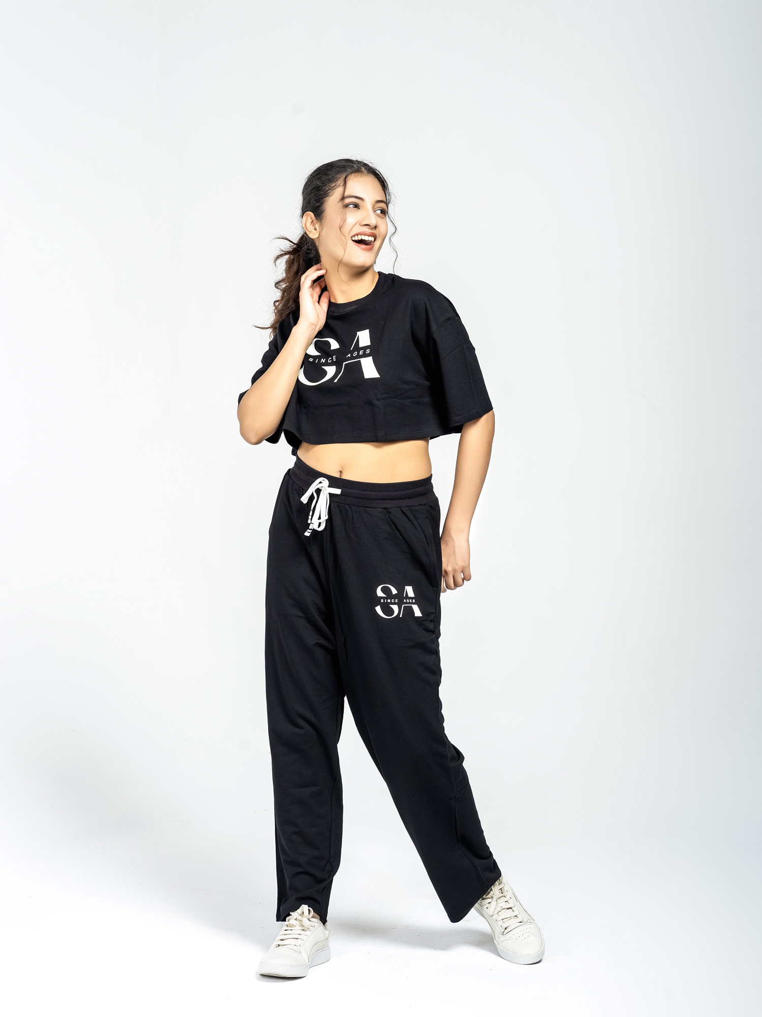 Oversized Cotton Crop Top & Trouser Co-ords (Black Hues)